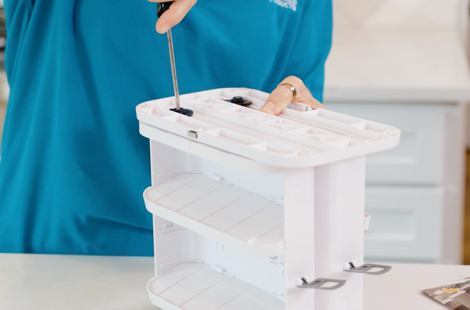 Sometimes, the Cabinet Caddy SNAP pull and rotate sections can become loose during shipping. If your caddy feels a little wobbly or loose, simply tighten the screws on the bottom. When you load it with your items, it should feel much smoother and more secure.
