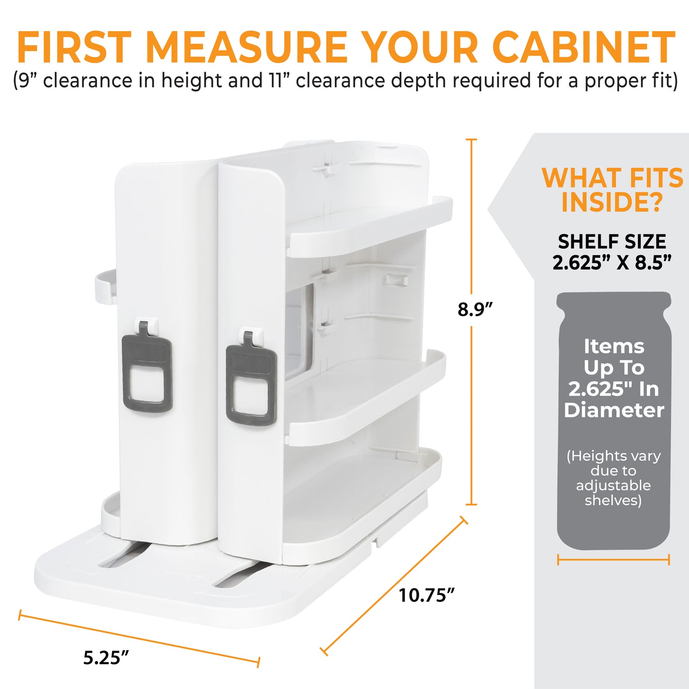 The Cabinet Caddy SNAP! is a pull-and-rotate cabinet organizer that allows you to customize your storage needs with snap-in shelves. Below, we'll show you how to use the Cabinet Caddy SNAP!