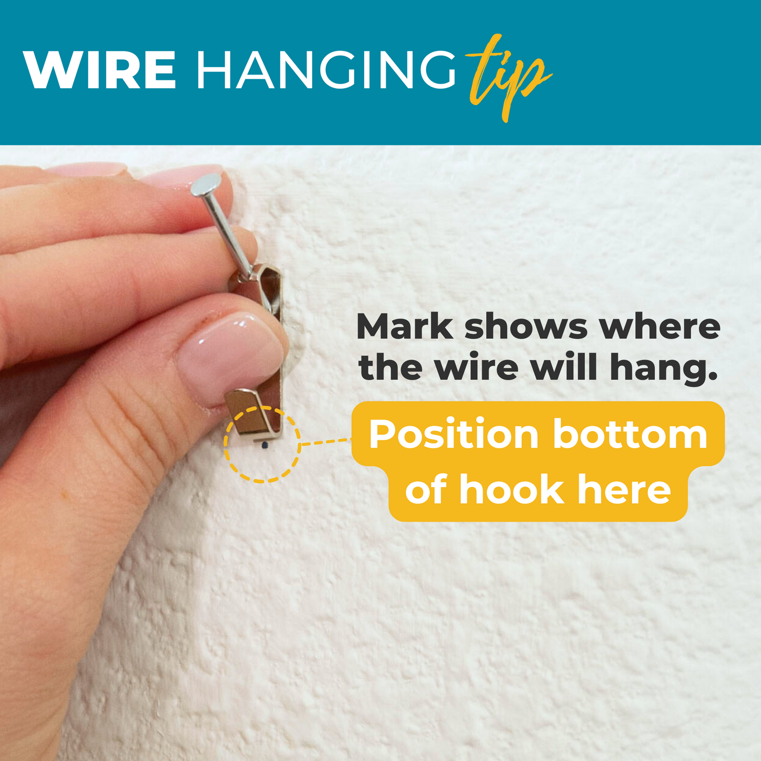 When hanging wire frames, remember that the mark in the wall is the position where the wire will actually hang. If using a wall hook, be sure to position the bottom of the hook in line with the wall mark.