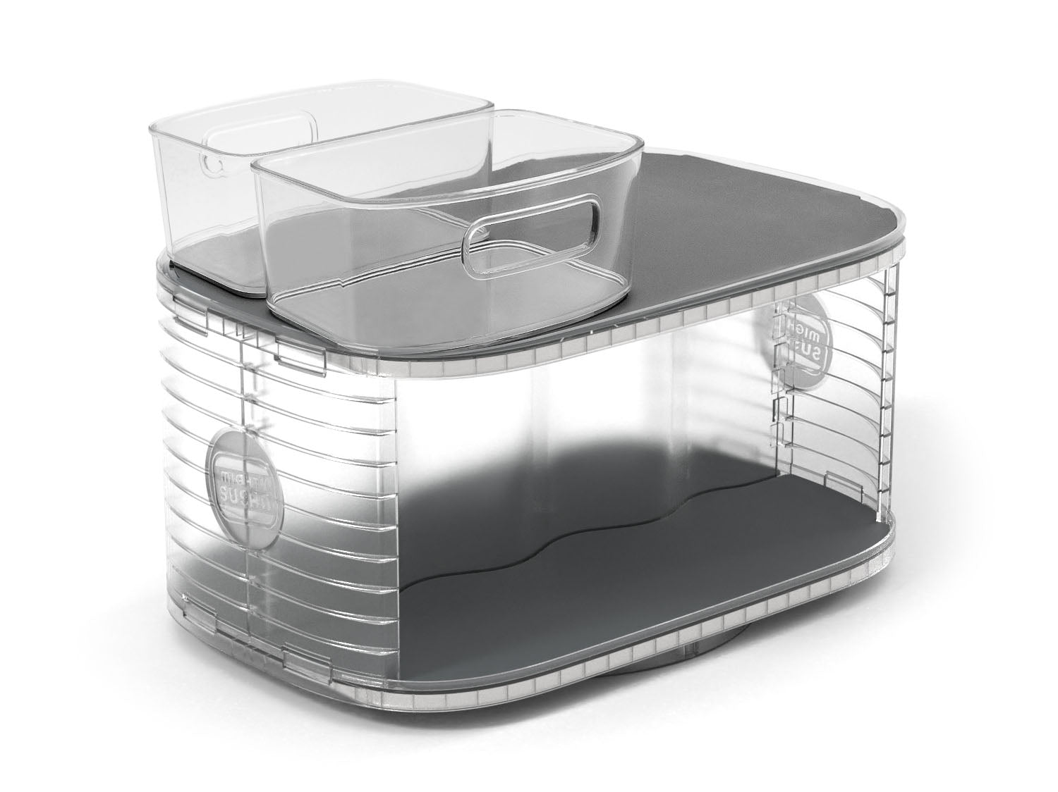 The Mighty Susan includes the rotating 2-tiered base with Non-Slip Silicone Mats and 2 bonus Organizational Bins to make the most of your organization.