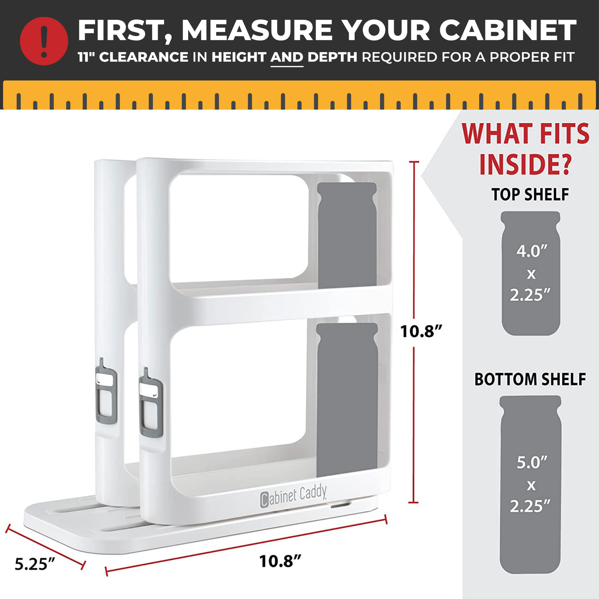 Fits most cabinets. Clearance of 11" deep and 11" tall required for a proper fit. Product Dimensions: 10.8" x 5.25" x 10.8"